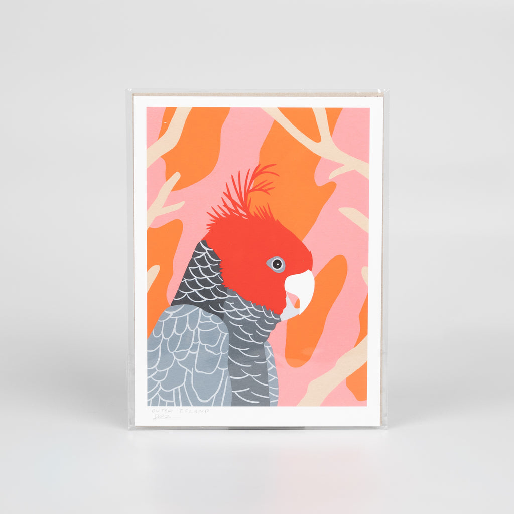 Fine art print featuring an illustration of a gang-gang cockatoo.