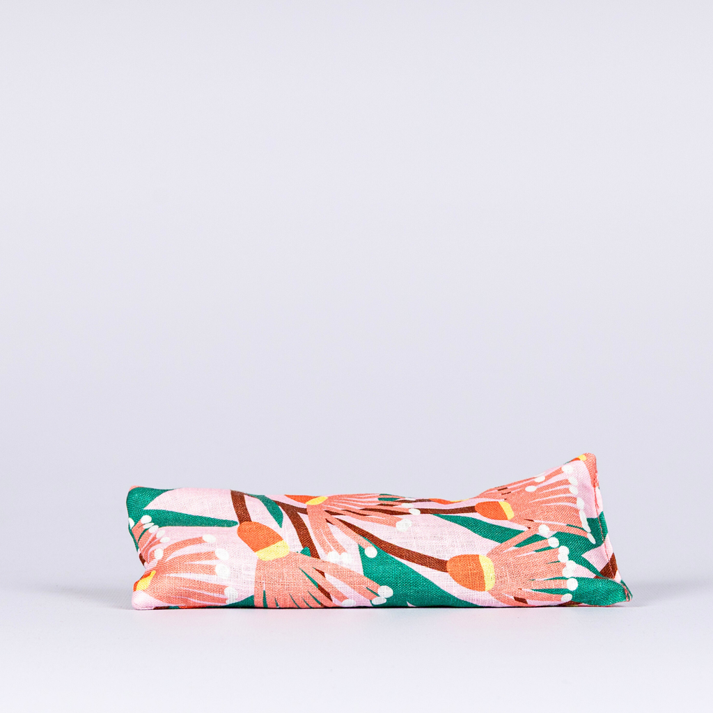 Place this soothing eye rest pillow over your eyes while lying down. It will block out light and spread a soothing weight over your eyes & forehead. Helps to relax facial muscles and release stress and tension. Filled with flaxseed & lavender, this product is designed to be used at room temperature or less.