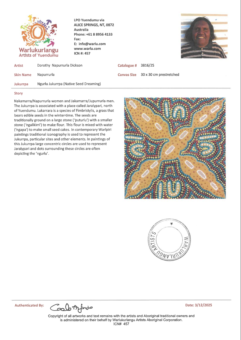 Ngurlu Jukurrpa (Native Seed Dreaming) by Dorothy Napurrurla Dickson
