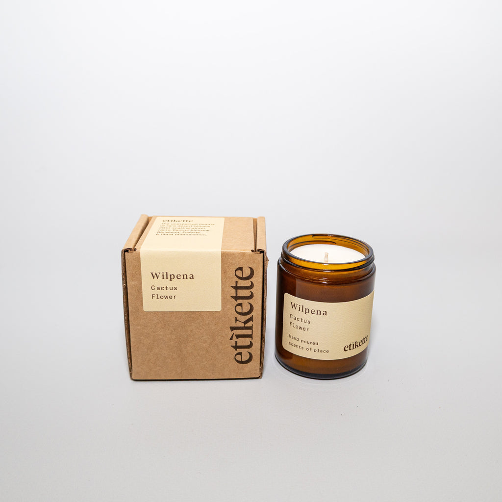 A hand-poured soy wax candle capturing the delicate beauty of rare desert blooms after winter rains. Notes of cactus blossom, bergamot, freesia, and sweet musk fill your space with the essence of Wilpena Pound. Designed to evoke the Australian landscape through scent, this candle offers a sensory journey to the heart of the Ikara-Flinders Ranges.