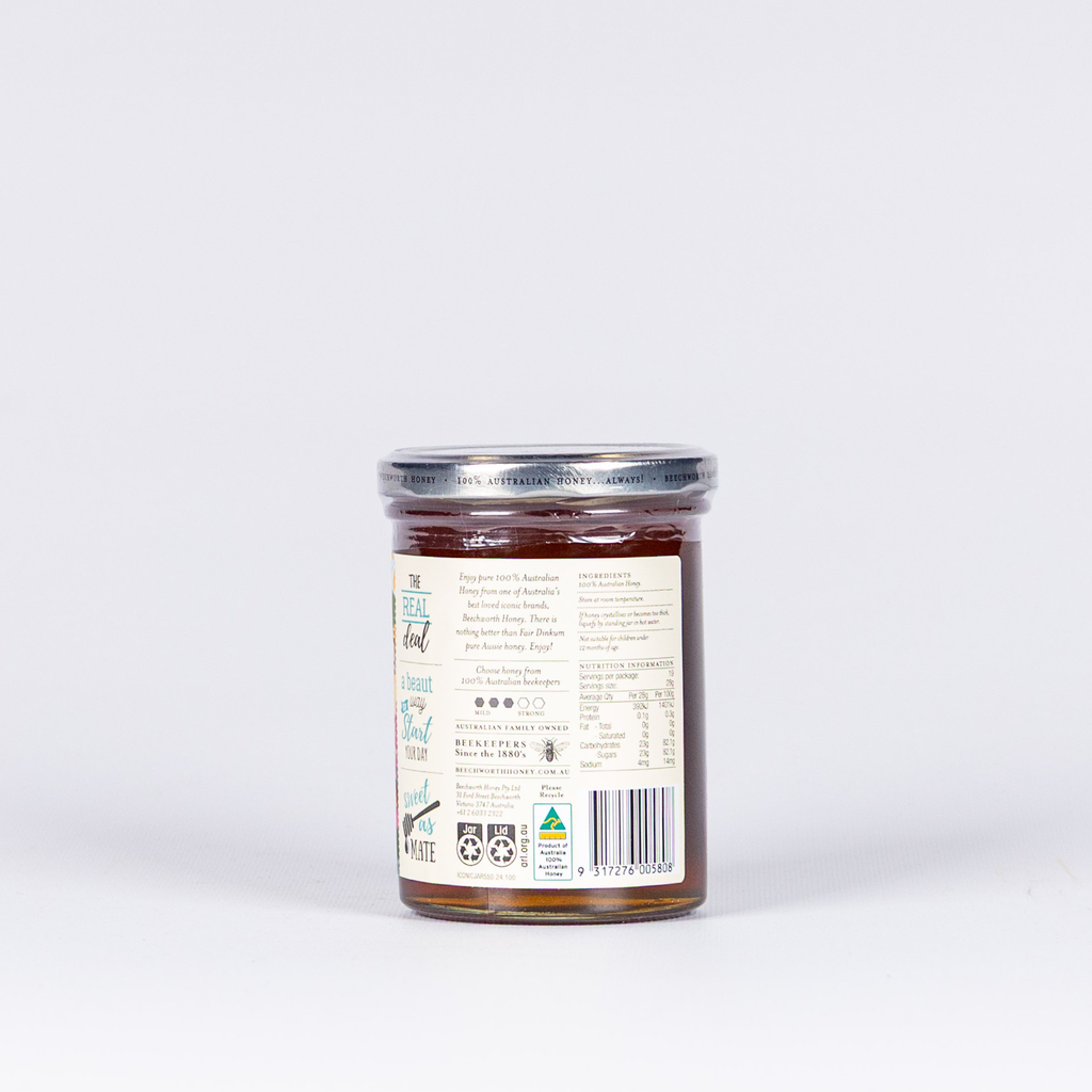 A true taste of the Australian bush — smooth, golden and beautifully balanced with a gentle, lingering sweetness. This pure honey captures the essence of our wide-open landscapes and native flora in every spoonful.
