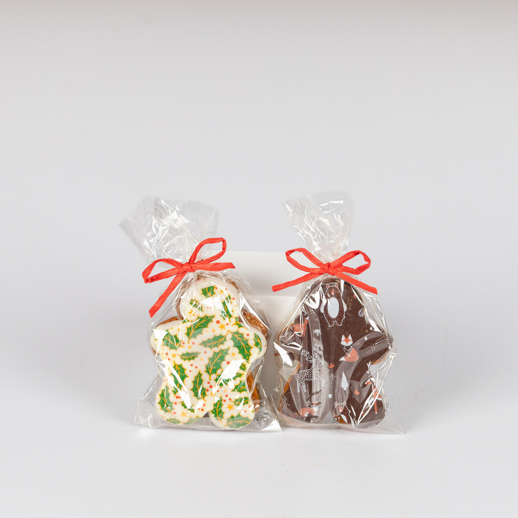 Chocolate decoration: sugar, cocoa butter, whole milk powder, natural vanilla flavouring, colours E171, E172, E129, E120, dark chocolate, cocoa 70% minimum, emulsifier(s), sunflower lecithin, fat-reduced cocoa powder.