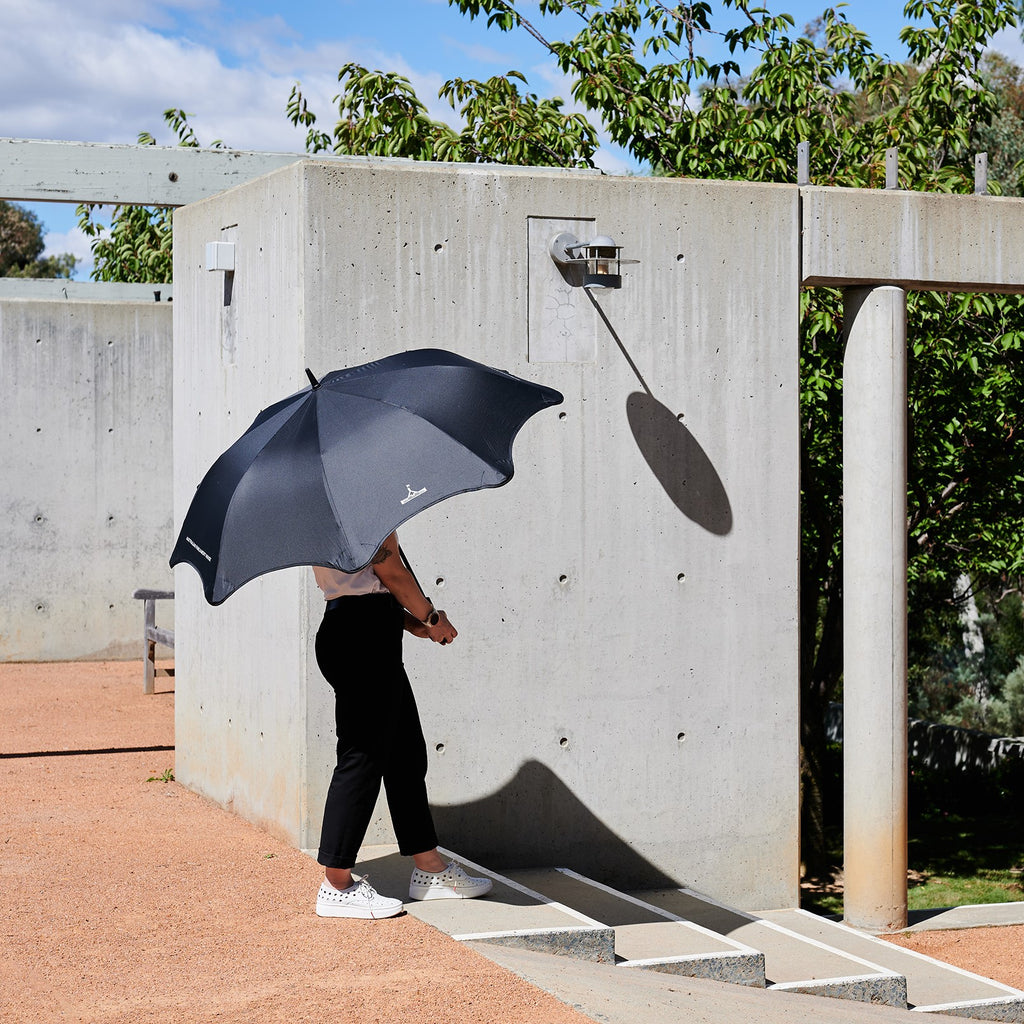 The umbrella includes an automatic open button and has been designed so it cannot be blown inside out. The fibreglass shaft is strong and lightweight, making it easy to manoeuvre. The fabric has a sun protective rating of 50+.