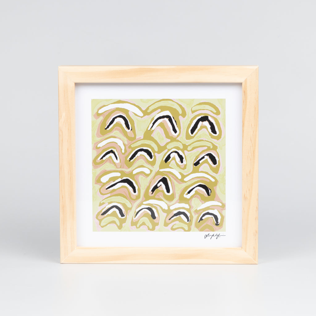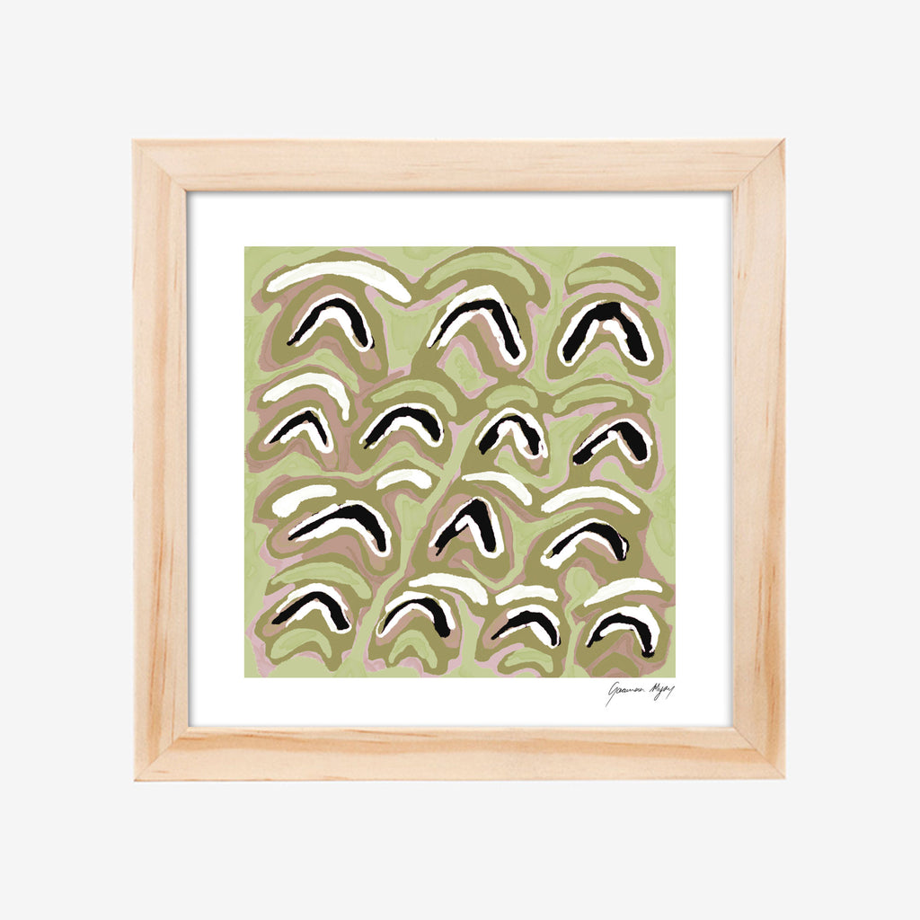 Green GIINBAL by Yuwaalaraay artist Lucy Simpson. Signed print in a handmade, carbon-neutral slim box frame.
