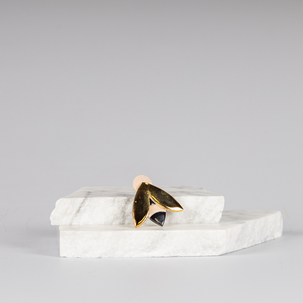A gorgeous statement piece featuring the stylised form of the bee. Gold gilding reflects warm colours of pollen and honey with gloss black porcelain. Great with a formal jacket, summer shirt or fastening a scarf.