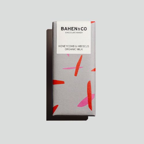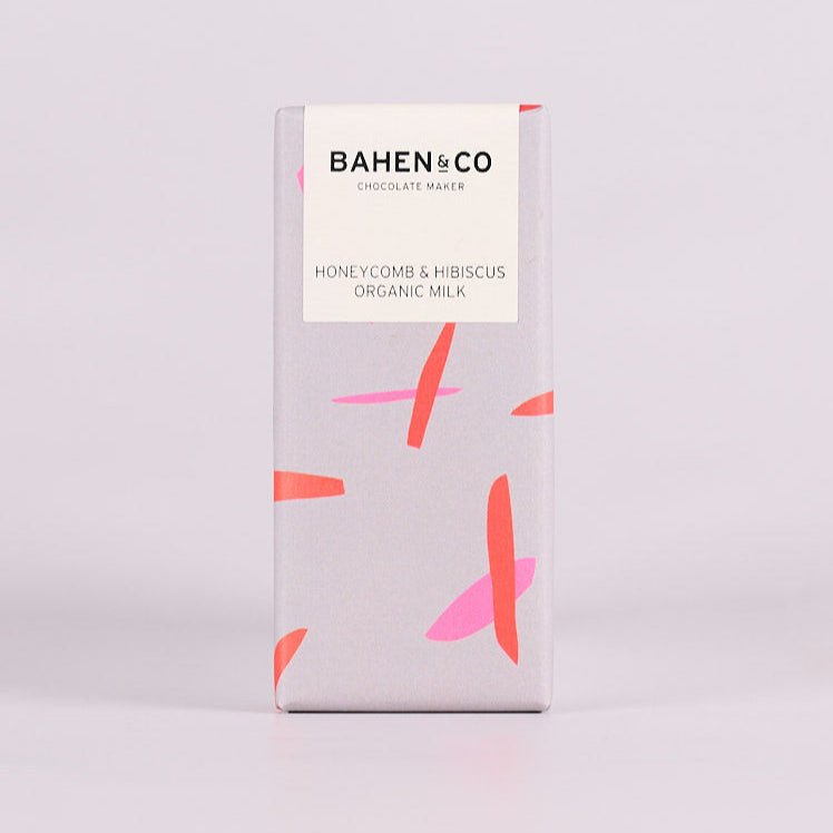 Salted honeycomb, a combination of forest honey & ocean salt, paired with red hibiscus flowers. A delicious blend, complementing the rich notes of Bahen & Co organic milk chocolate.