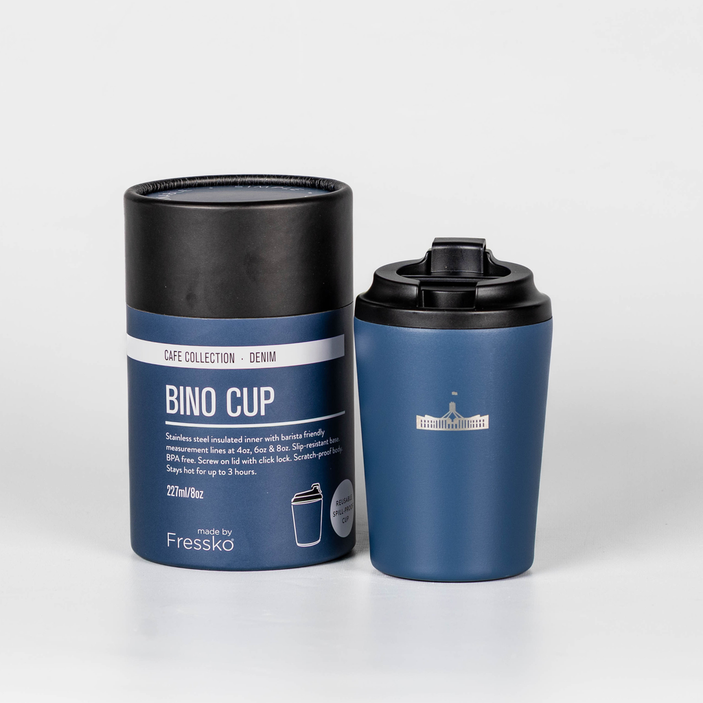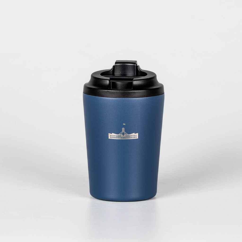 Reusable coffee cup featuring Australian Parliament House. The iconic building has become an enduring symbol of Australia’s democracy.