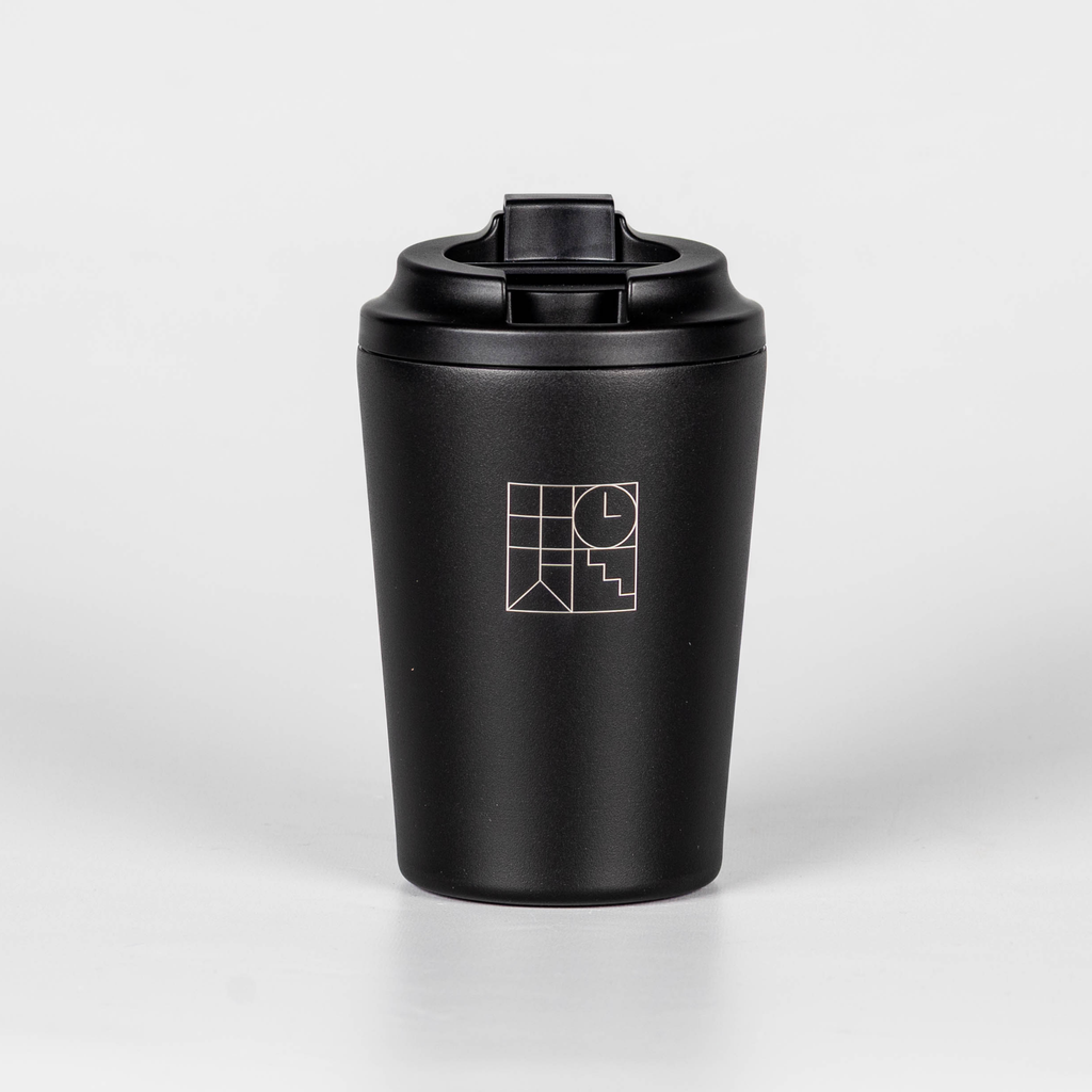 This chemical‑free, lightweight, insulated stainless steel coffee cup is a Good Design Award winner. It is vacuum sealed and scratch resistant, and has a spill‑proof lockable lid and internal barista lines. It fits perfectly under the barista’s machine and in a standard cup holder.