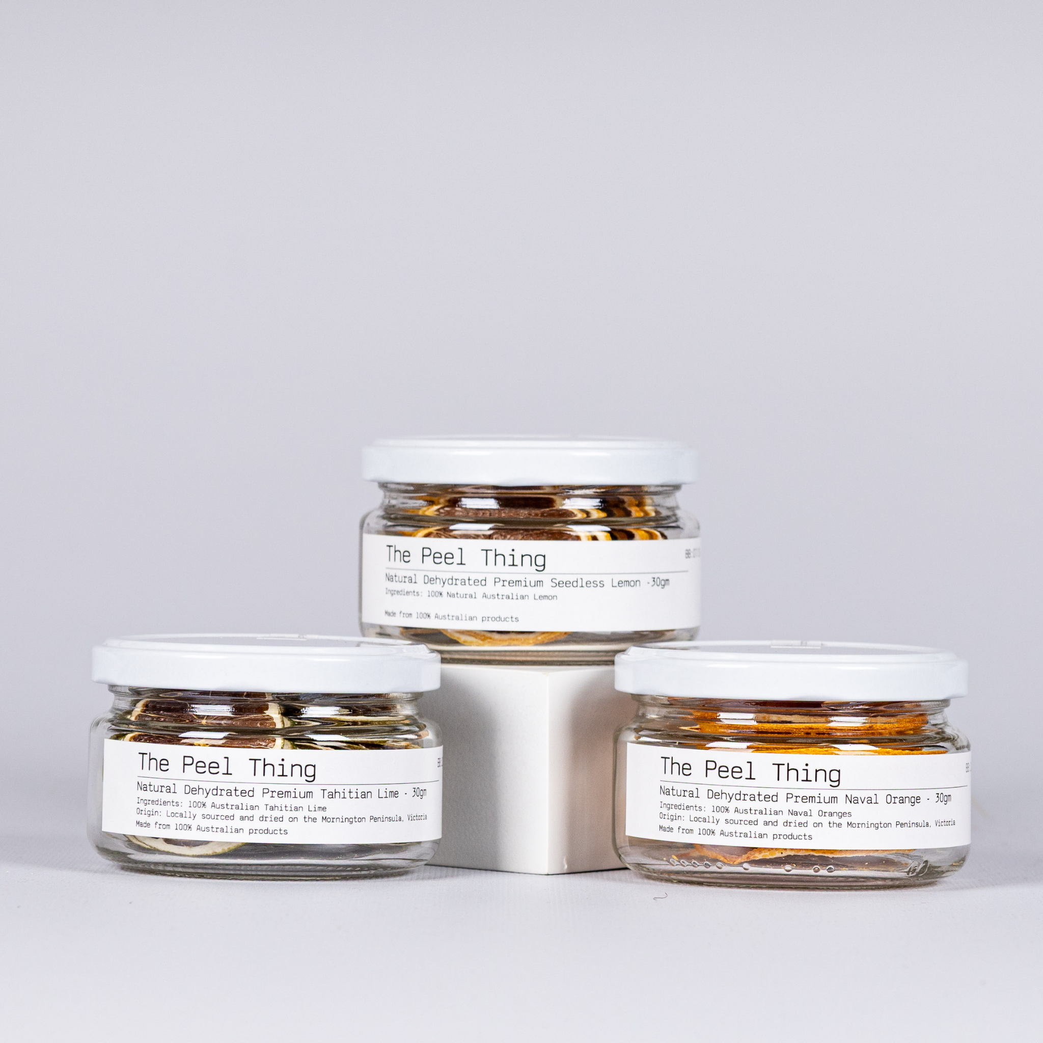Lovingly sourced from local farms and dried on the Mornington Peninsula, The Peel Thing’s citrus range is free from preservatives and artificial additives — just pure, peak-season fruit in every jar.