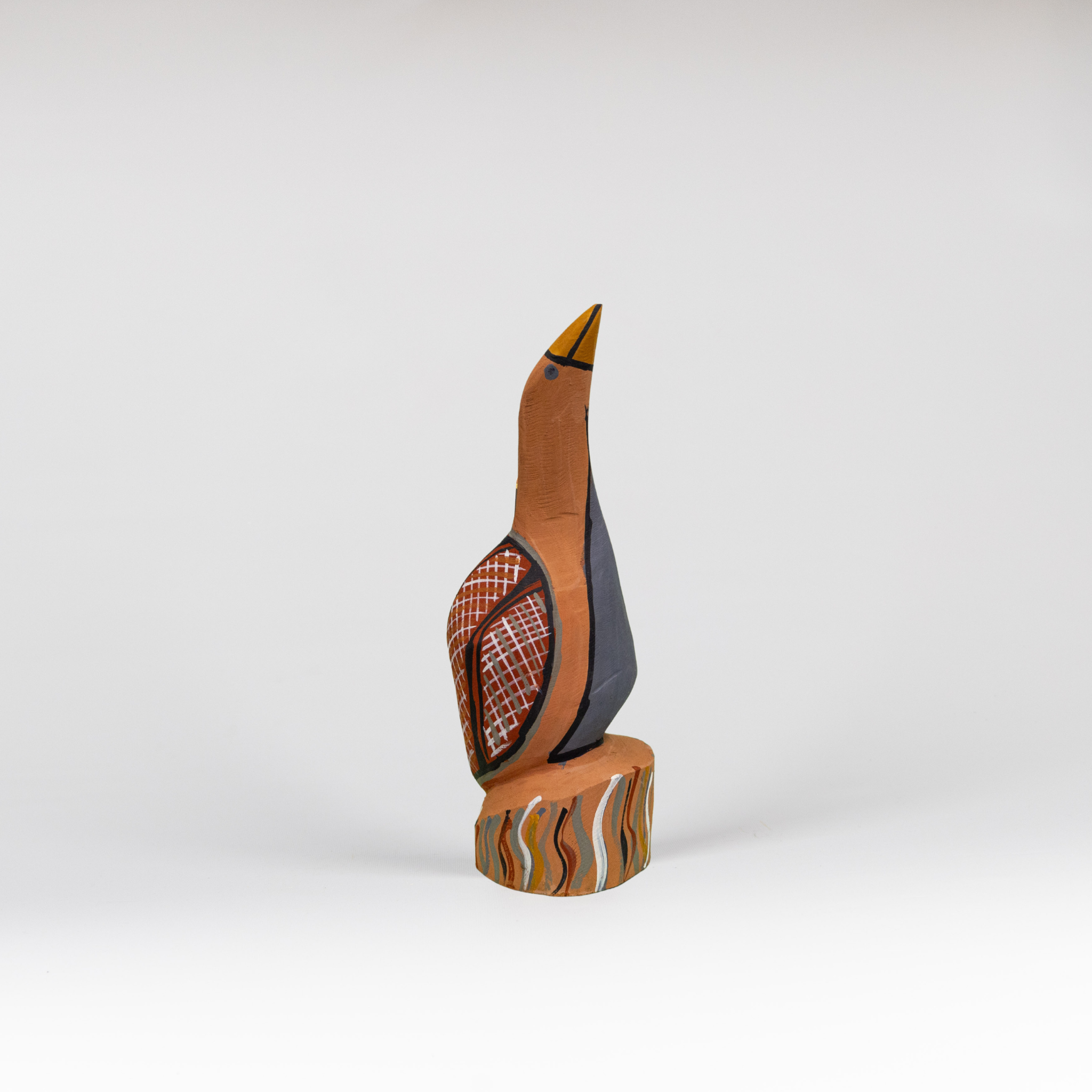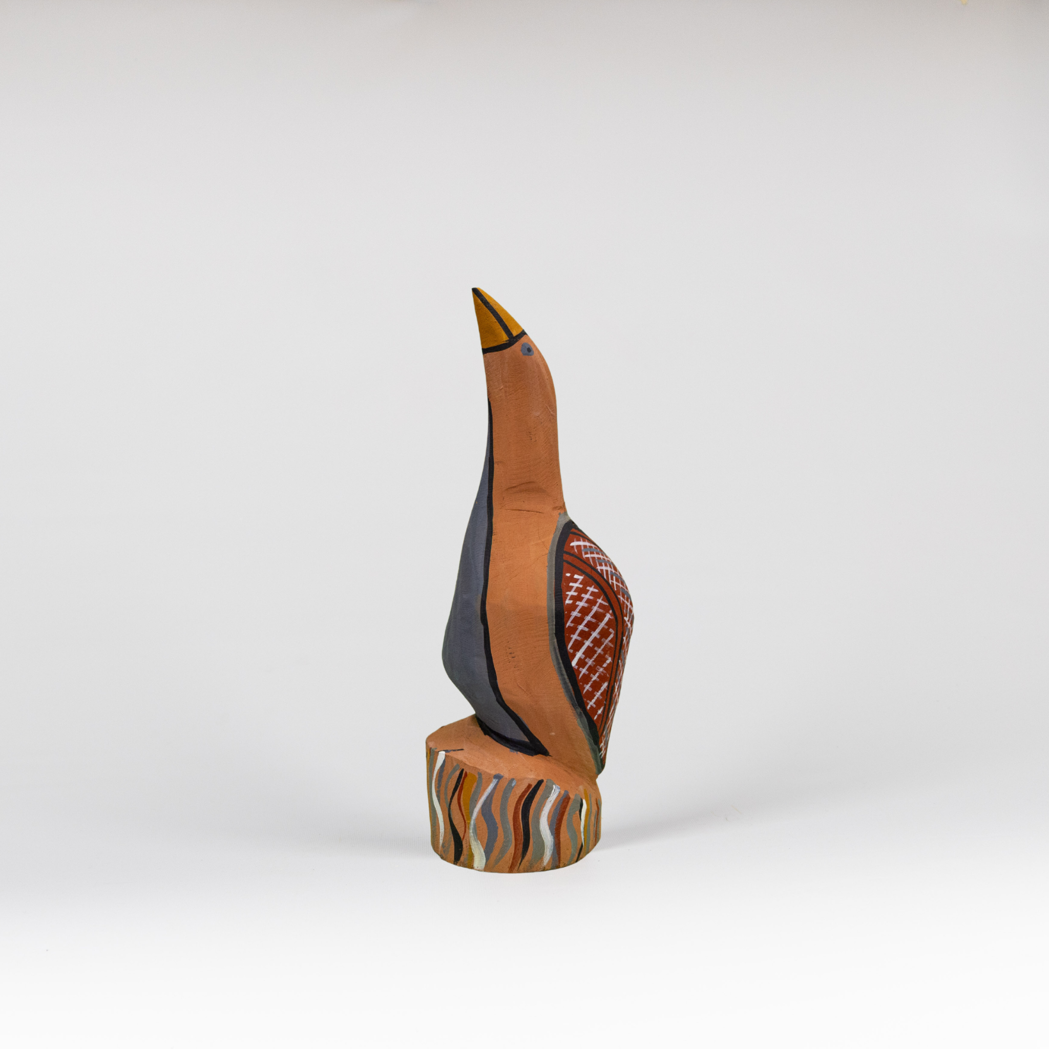 Hand-carved timber bird sculpture in the traditional Tiwi Islands style by Michael Munkara.