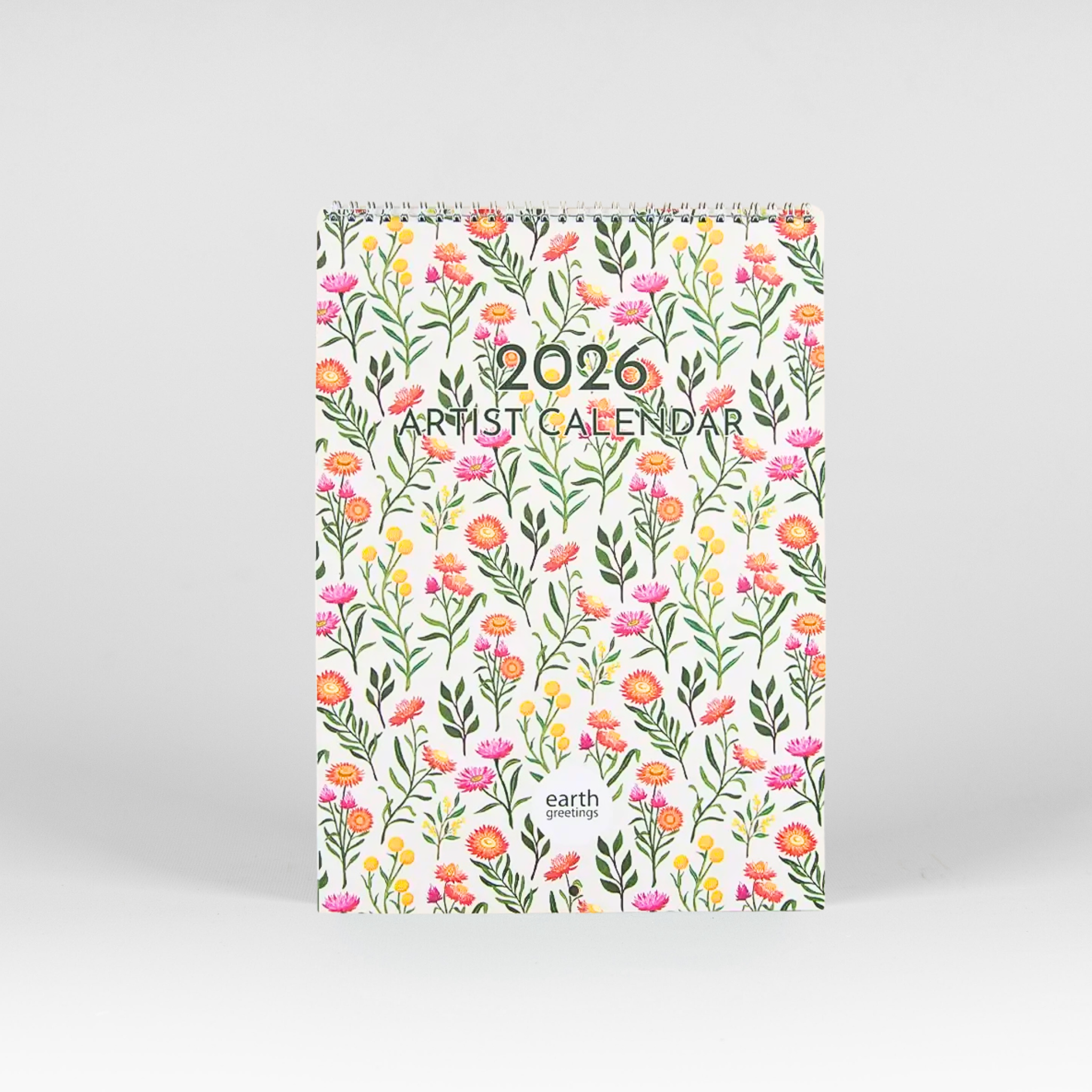 Featuring the best and brightest of our Australian based talent, this large size 2026 calendar will inspire you all year long. It's Australian made from 100% recycled paper, carbon neutral and plastic-free. 10% of profit from our calendars is donated to wildlife and habitat.