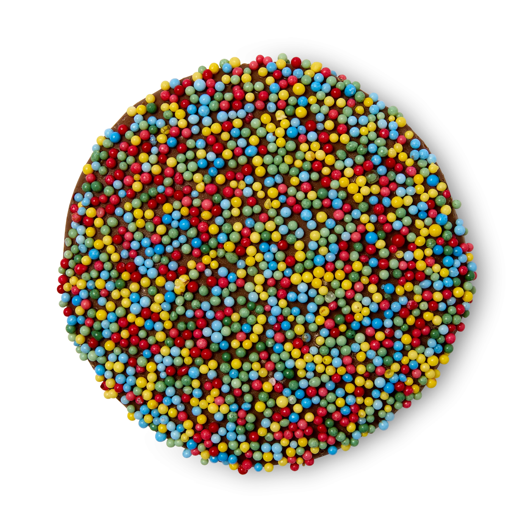 Ingredients: Chocolate (Sugar, Cocoa Butter, Milk Solids, Cocoa Mass, Emulsifier [Soy Lecithin], Natural Vanilla Flavouring), Natural Sprinkles (24%) (Sugar, Tapioca Starch, Plant Extract, Natural Colours [100, 120, 160c], Glazing Agent [903]).