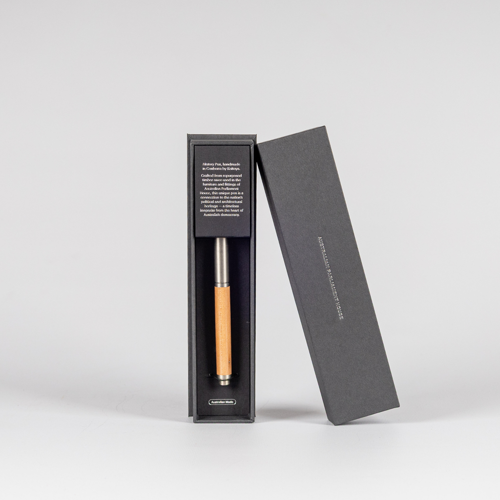 Crafted from repurposed timber once used in the furniture and fittings of Australian Parliament House, this unique pen is a connection to the nation's political and architectural heritage - a timeless keepsake from the heart of Australia's democracy.