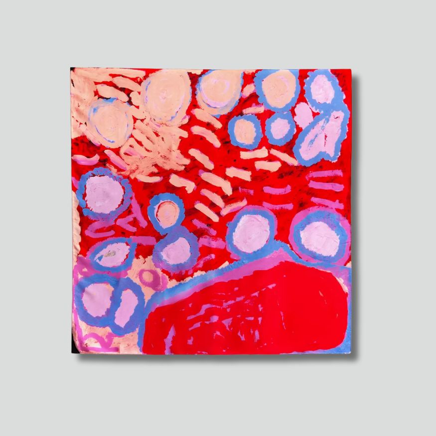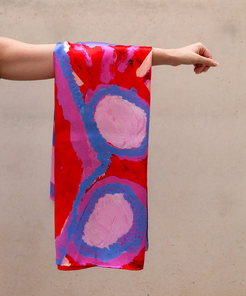 Scarf featuring an untitled artwork by Rosie Tarku King.