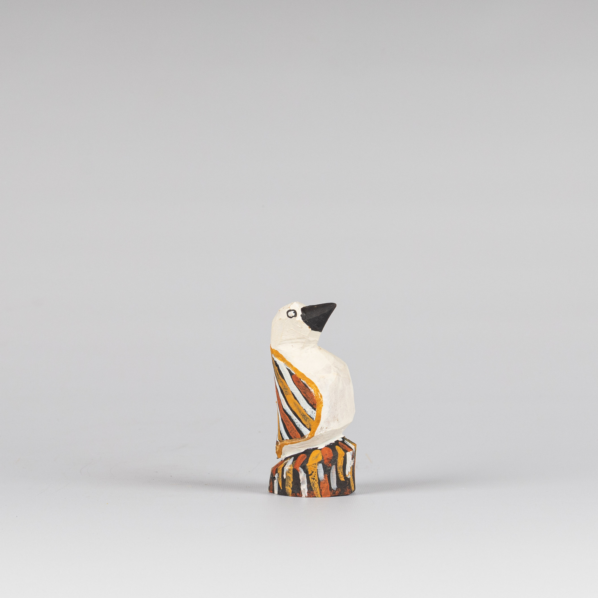 Hand-carved timber bird sculpture in the traditional Tiwi Islands style by Albertus Titiloura