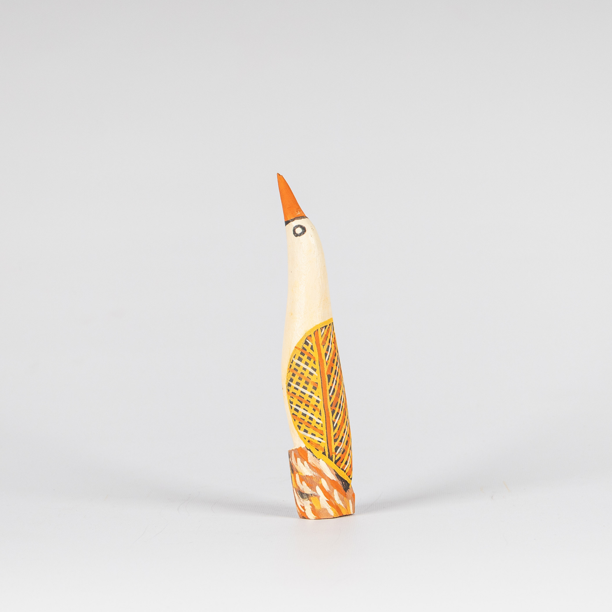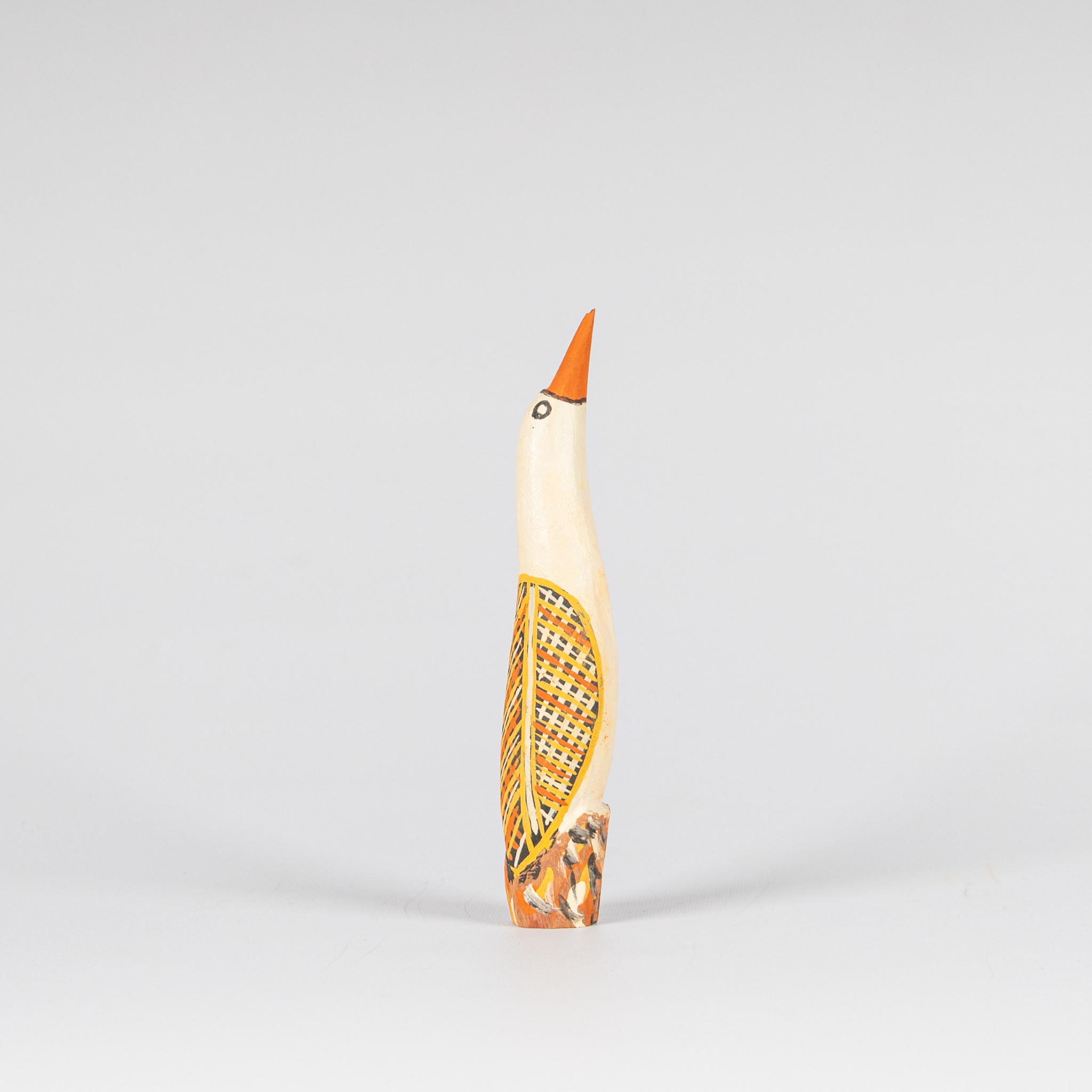 Hand-carved timber bird sculpture in the traditional Tiwi Islands style by Harold Munkara.