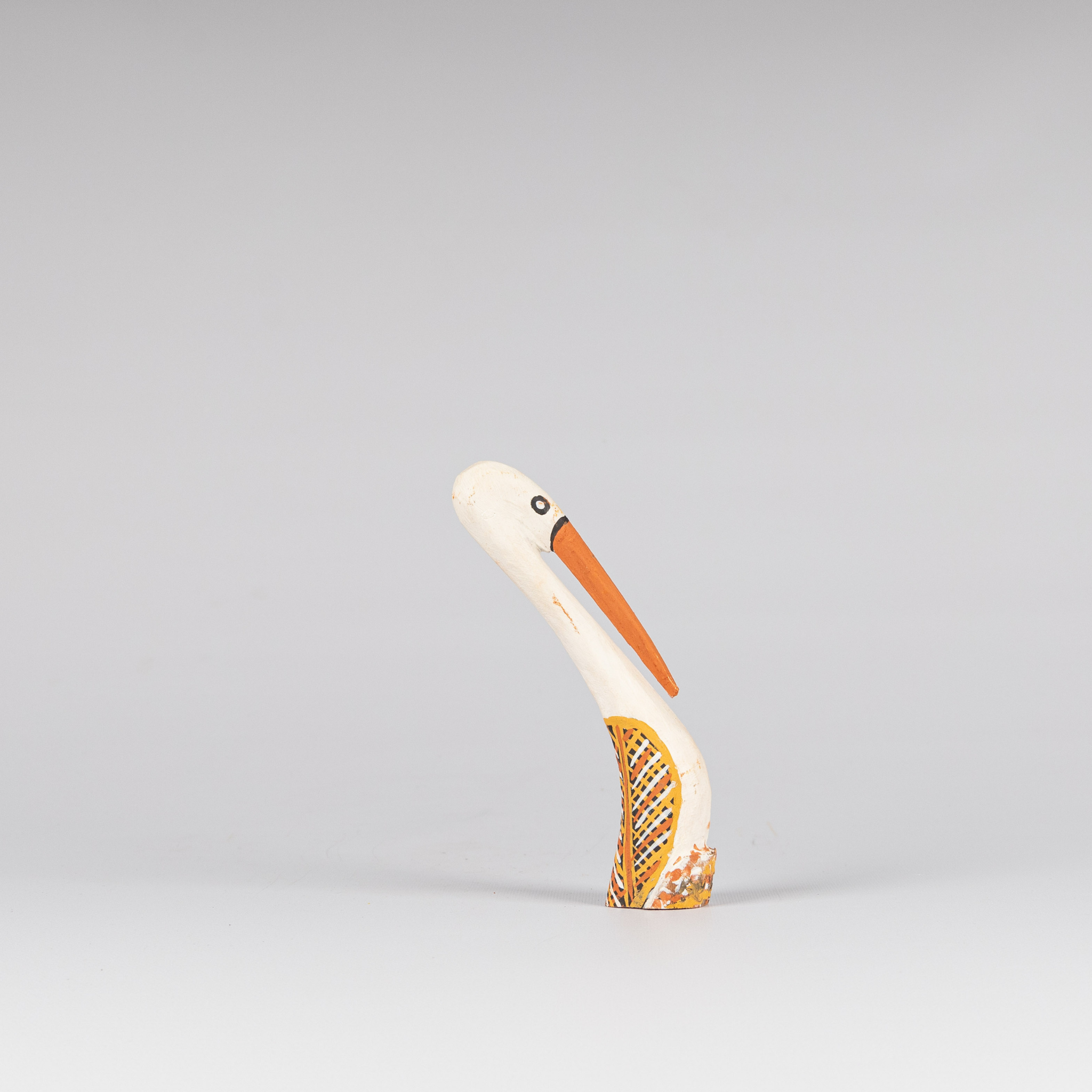 Hand-carved timber bird sculpture in the traditional Tiwi Islands style by Harold Munkara