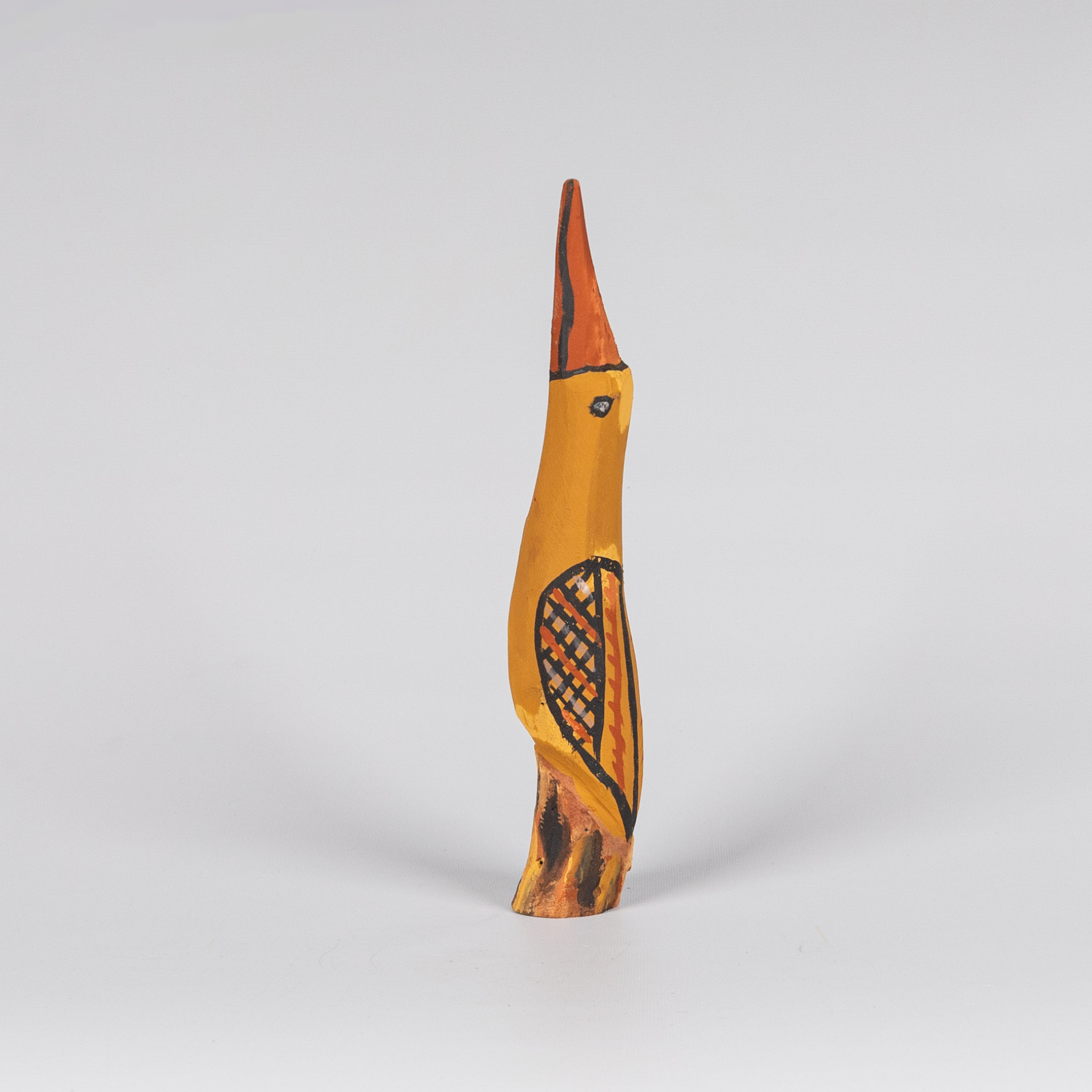 Hand-carved timber bird sculpture in the traditional Tiwi Islands style by John Babui